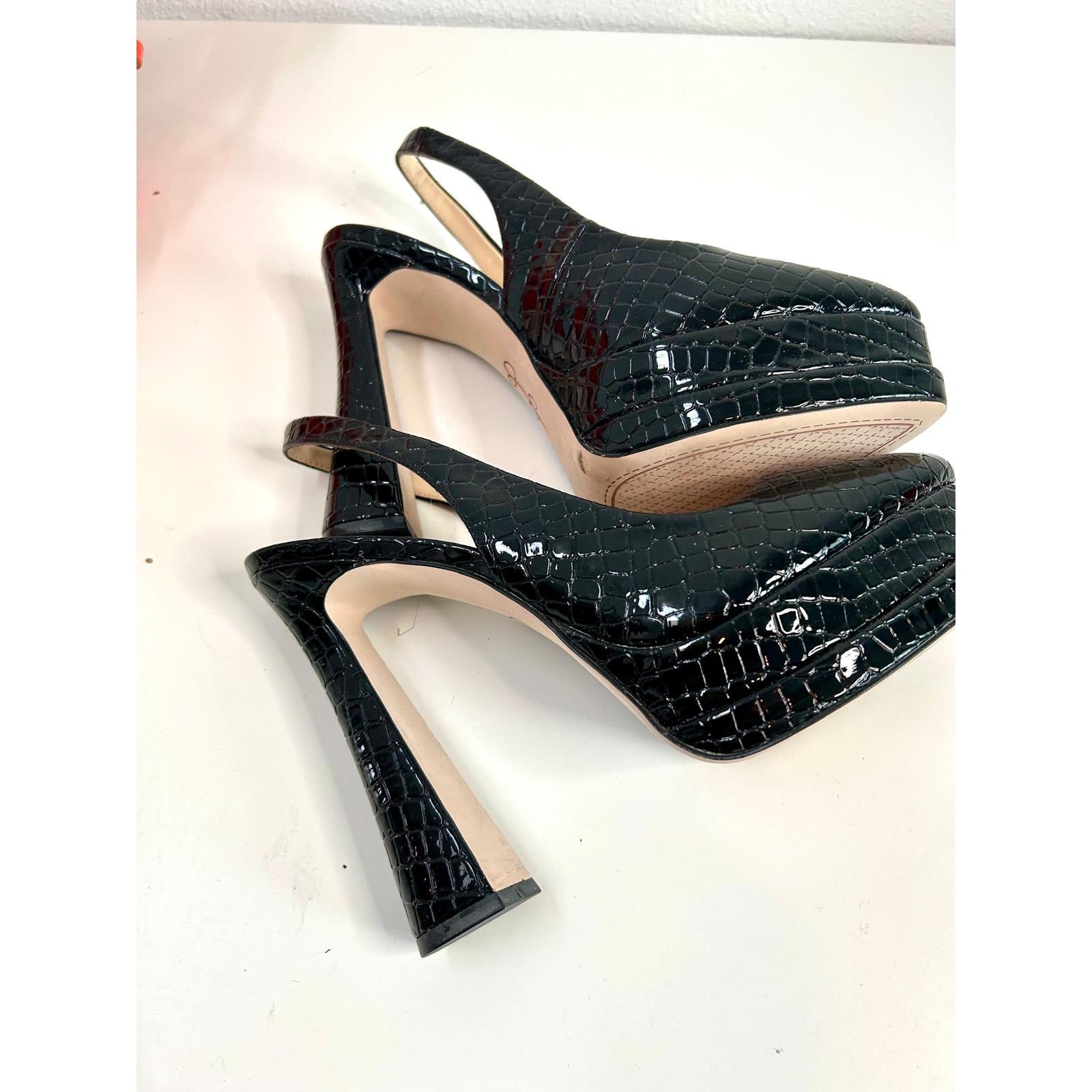 Jessica Simpson 5" platform heels. Sling back strap. Shiny embossed patent leather. Brand new